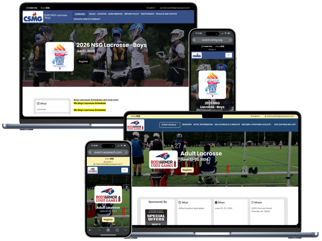 Elevate your lacrosse camps, tournaments and leagues with SportReach's intuitive software and websites, designed to simplify online registration, team dues collection, and event scheduling. Experience reduced administrative hassle, boosted community engagement, and seamless operations that let you focus on what matters: growing the game of lacrosse.